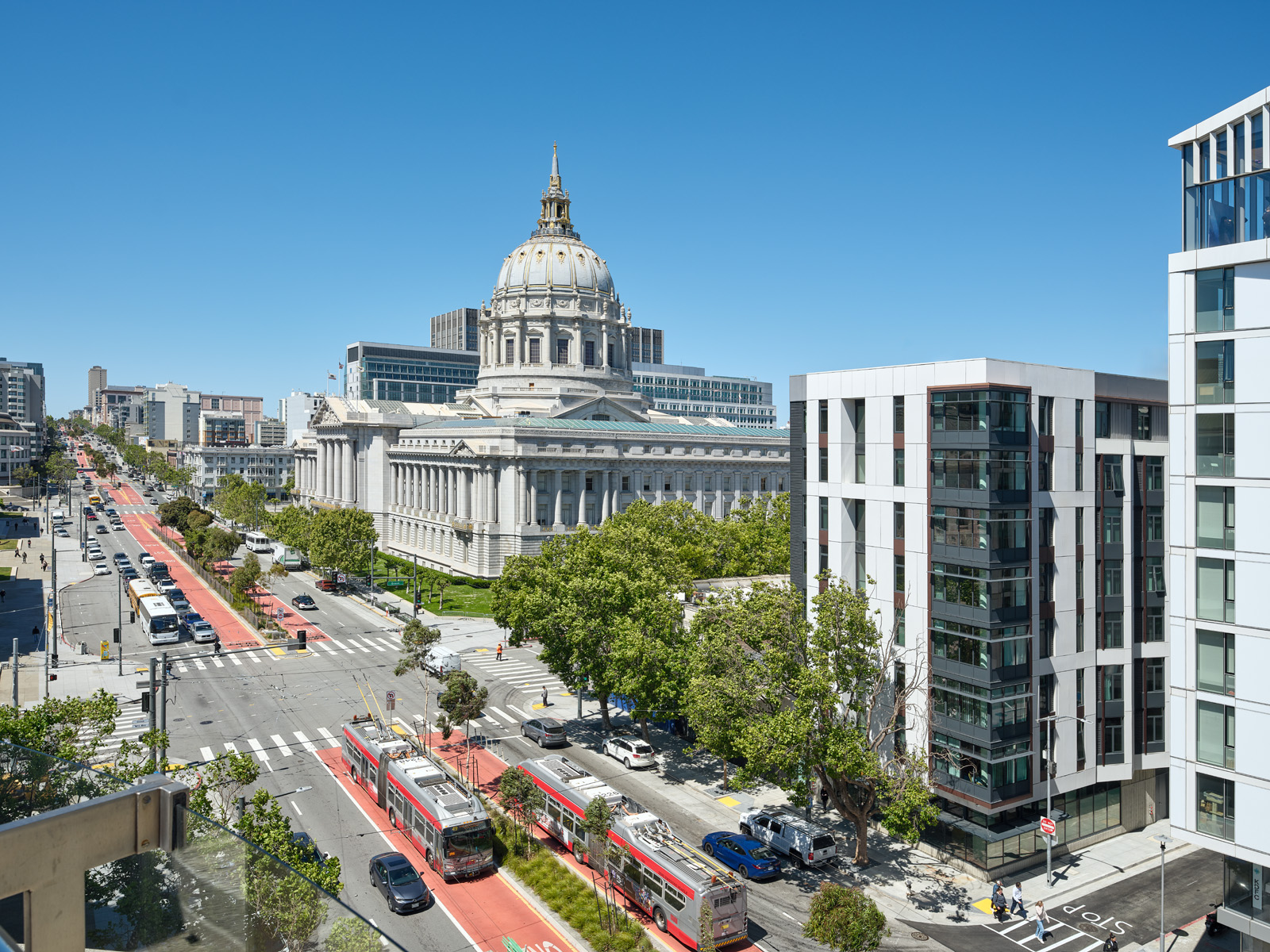 Above the DCC, The Kelsey Civic Center is a pioneering housing development featuring 112 affordable homes designed for residents with and without disabilities, with 25% of units reserved for individuals with disabilities.